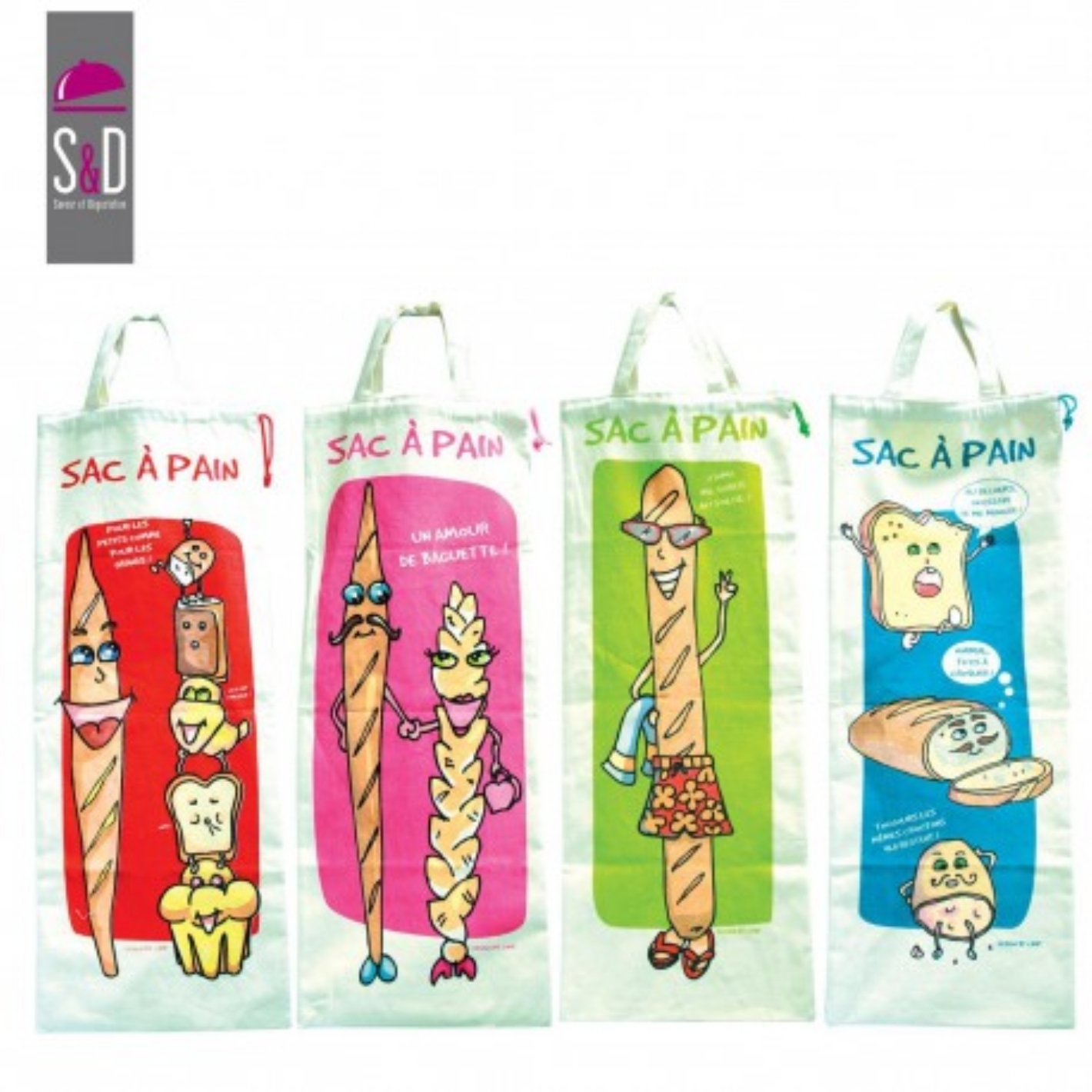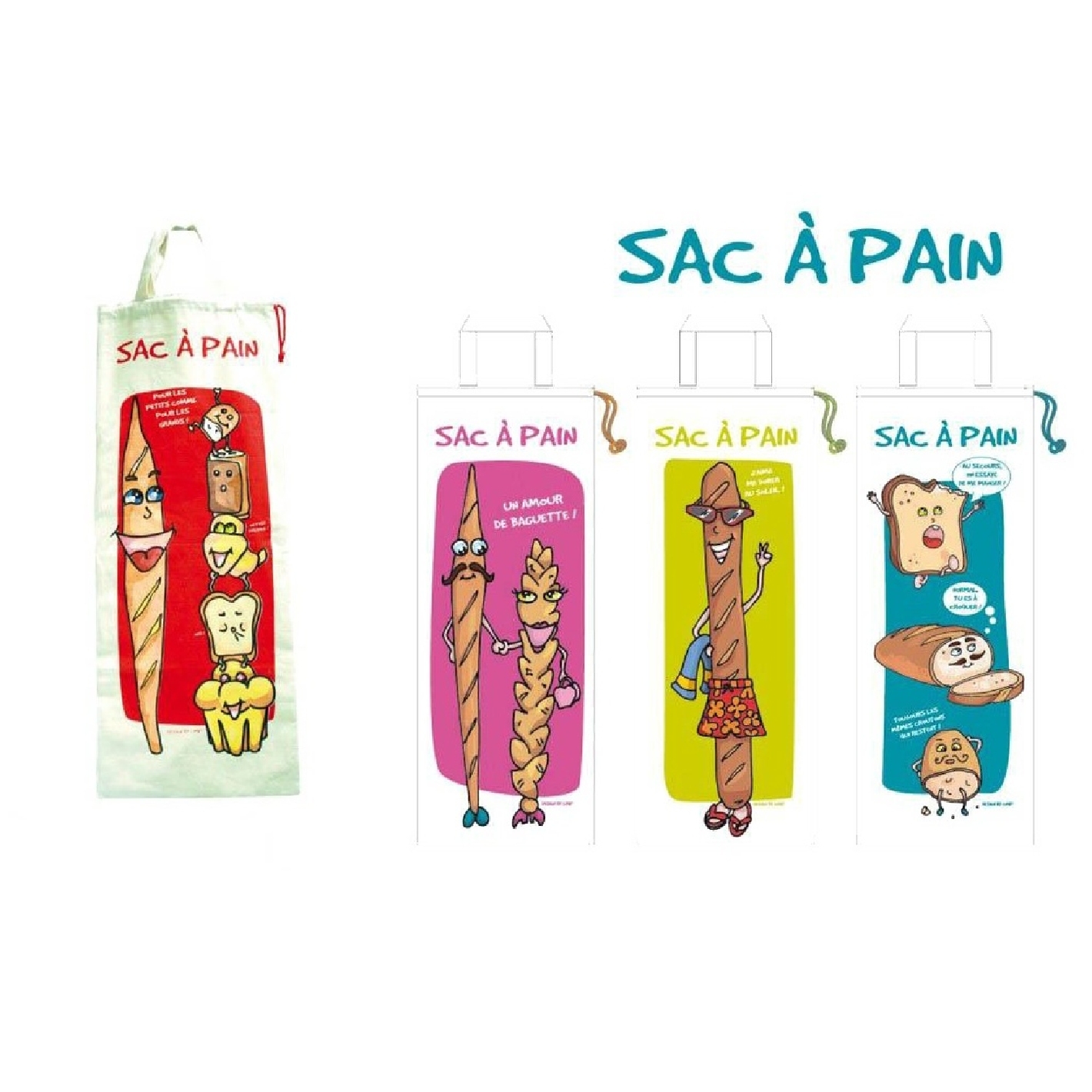 Sac À Pain Assortis| Rangement Mural Cuisine Fun | Dimension : 27X70Cm. Matière : 100% Coton