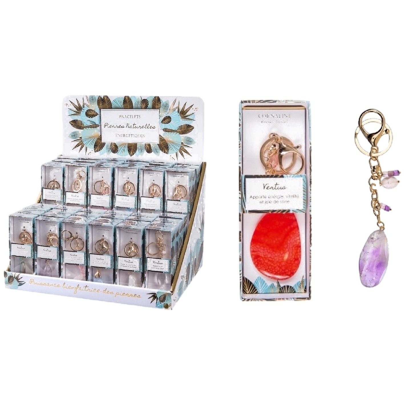 Agate bleue,Agate verte,Amethyste,crystal de roche rose pale,crystal de roche bleu,crystal de roche blanche,crystal de roche, Cornaline, Agate mousse,crystal de roche rose,cristal d'aqua Présentoir de 48 pièces (ventes vrac par 12 minimum)
