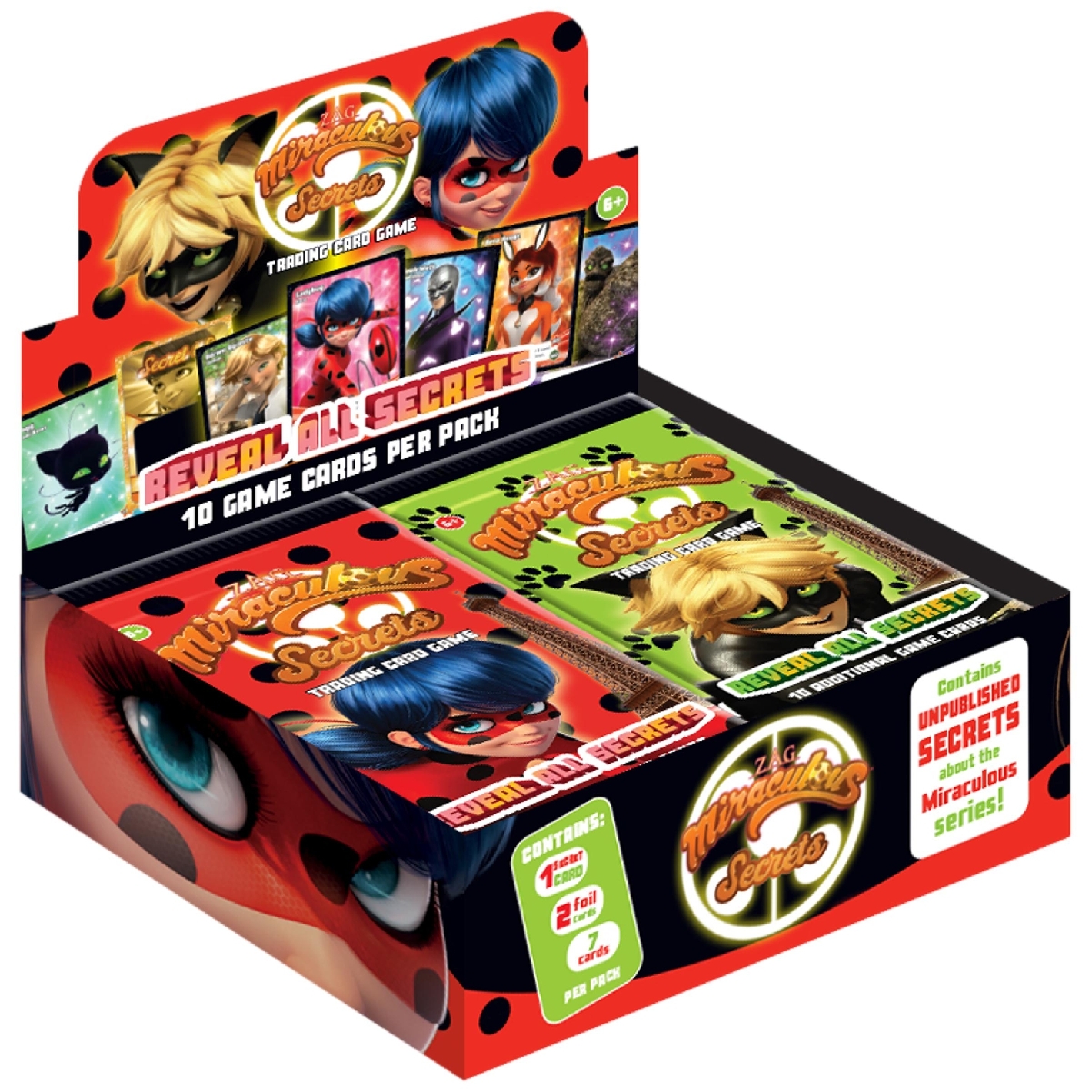 en display de 24. Contient 10 TCG 7, simple charactère , bonus ou évènement. 2 cartes spéciale avec personnage ou bonus 1cartes Secret thermoactives